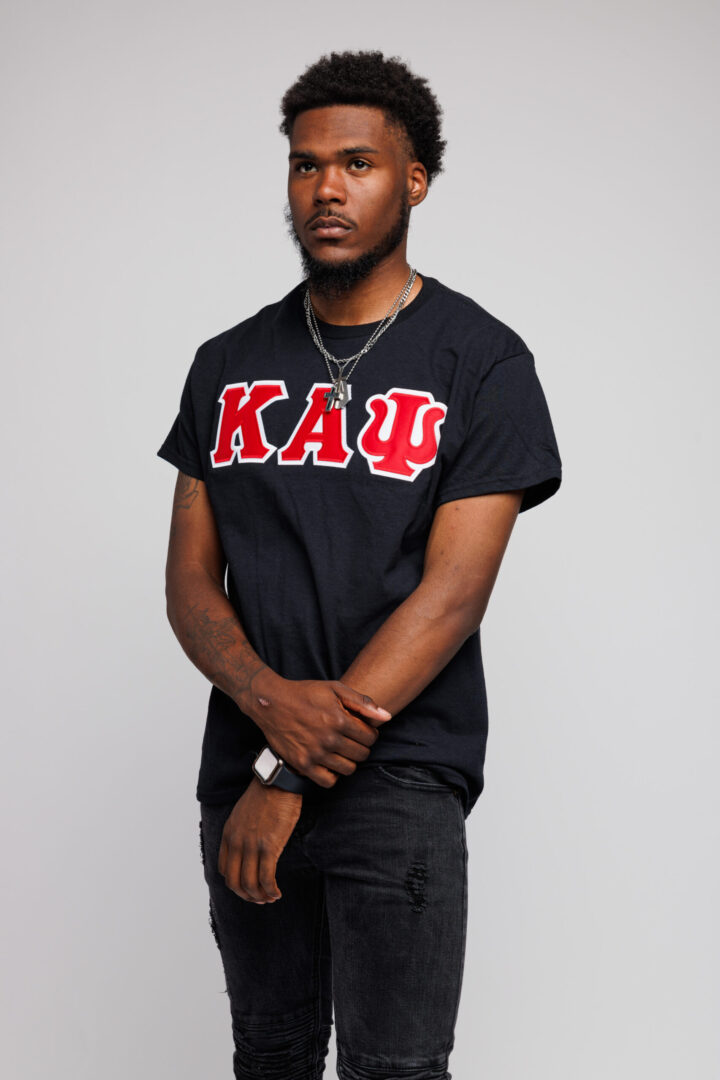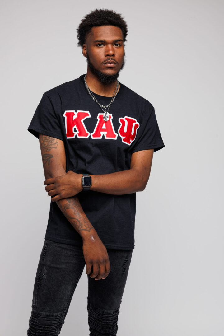 Our Kappa Alpha Psi White and Red Lettered Black T-shirt is a must have for the collection. The ΚΑΨ letters are stitched with appliqué embroidery with a white background and a red foreground on a men’s classic fit-sized t-shirt. A comfortable t-shirt with twill Greek letters embroidery across the chest gives you the perfect fit.